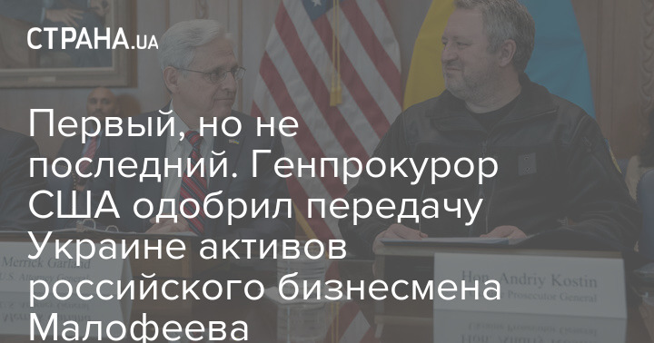 Генпрокурор США Меррик Гарленд одобрил передачу конфискованных активов подсанкционного российского бизнесмена Константина Малофеева для использования в Украине