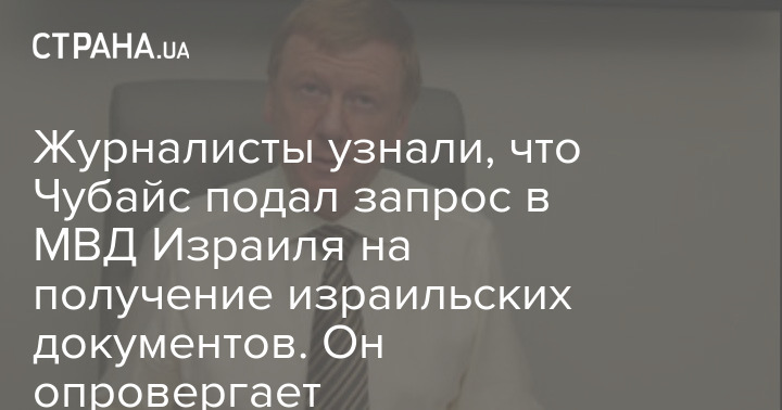 Журналисты узнали, что Чубайс подал запрос в МВД Израиля на получение израильских документов. Он опровергает