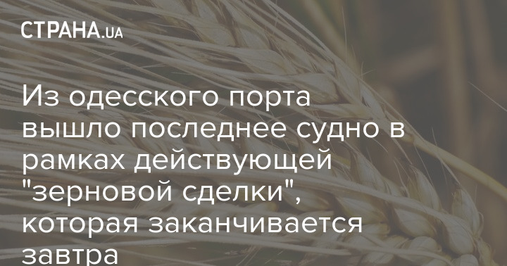 Из порта "Черноморск" в Одесской области сегодня отправилось последнее судно в рамках "зернового соглашения". Судно DSM Capella с 30 тысячами тонн кукурузы и следует в Турцию.