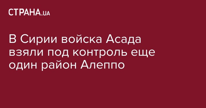 В Сирии войска Асада взяли под контроль еще один район Алеппо