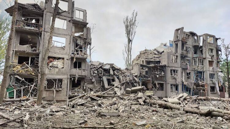 "Жилой дом в Авдеевке разрушила очередная российская ракета. 9 этажей - к фундаменту. Под завалами - два человека, но может быть до пяти человек. Два человека ранены, одна женщина - в тяжелом состоянии", - пишет Барабаш.
