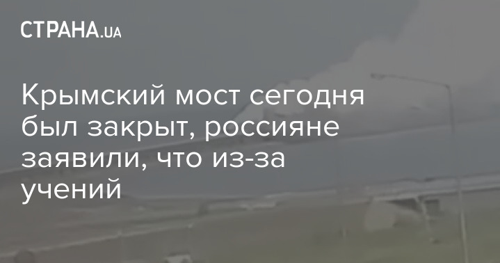 На Крымском мосту, где якобы проходили учения, виднеется дым. Фото: скриншот с видео