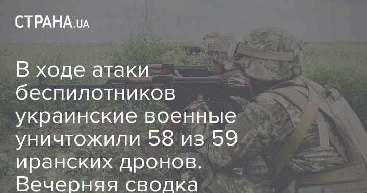 В ходе атаки беспилотников украинские военные уничтожили 58 из 59 иранских дронов. Вечерняя сводка Генштаба