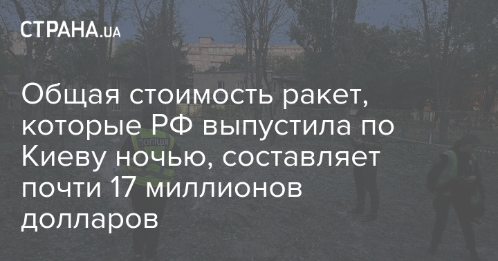 "Этой ночью Россия выпустила по Киеву 7 баллистических ракет "Искандер-М" и 3 крылатые ракеты "Искандер-К". Украинские силы ПВО сбили все 10 ракет. Одна ракета "Искандер-М" стоит до 2 млн долларов США, стоимость ракеты "Искандер-К" составляет до 1 млн долларов США. То есть российские оккупанты только на одну ночную атаку на столицу Украины выбросили до 17 млн долларов", - сказано в посте.