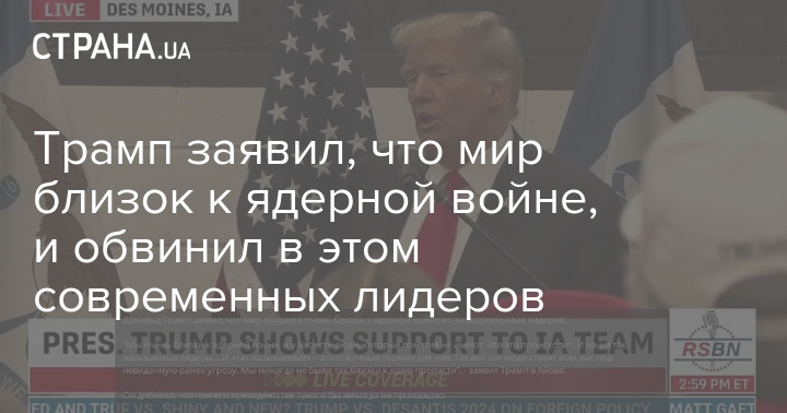 Экс-президент США Дональд Трамп заявил, что мир оказался очень близок к ядерной войне из-за современных лидеров.