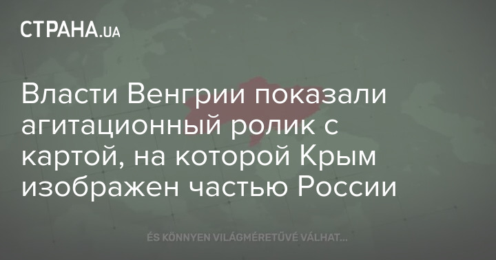 Правительство Венгрии обнародовало ролик с призывом о скорейшем мире в Украине, в котором Крым изображен как часть территории России.