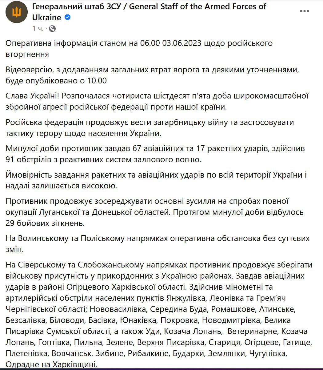 Как писала "Страна", война в Украине идет 465-й день. Мы следим за новостями 3 июня 2023 года в своем онлайне.