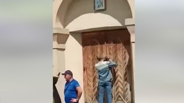 В Хмельницкой области произошел захват храма УПЦ. Скриншот видео