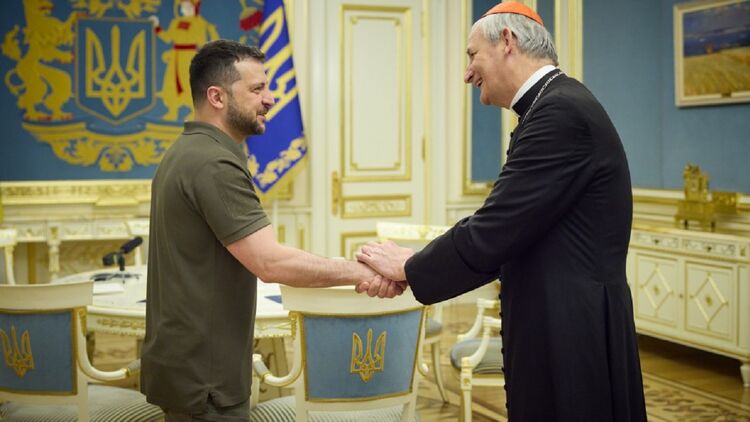 Президент Владимир Зеленский встретился со спецпредставителем папы римского Франциска кардиналом Маттео Дзуппи - главой посреднической миссии Ватикана по прекращению войны в Украине.