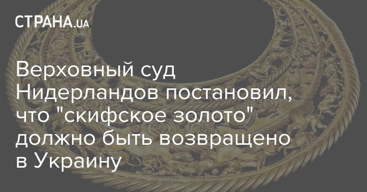 "Скифское золото" должно быть возвращено в Украину. Такое решение утвердил Верховный суд Нидерландов, оставив в силе вердикт апелляционного суда Амстердама от октября 2021 года.