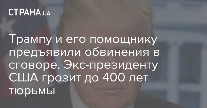Трампу и его помощнику предъявили обвинения в сговоре. Экс-президенту США грозит до 400 лет тюрьмы