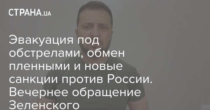 Эвакуация под обстрелами, обмен пленными и новые санкции против России. Вечернее обращение Зеленского