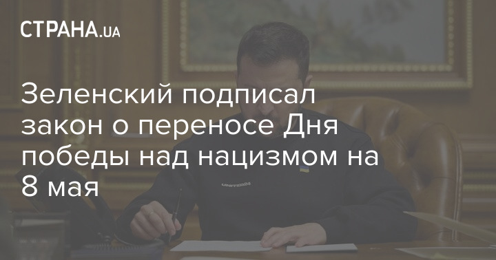 Президент Украины Владимир Зеленский подписал принятый парламентом законопроект №9278, которым предусмотрен перенос празднования Дня памяти и победы над нацизмом во Второй мировой войне 8 мая.