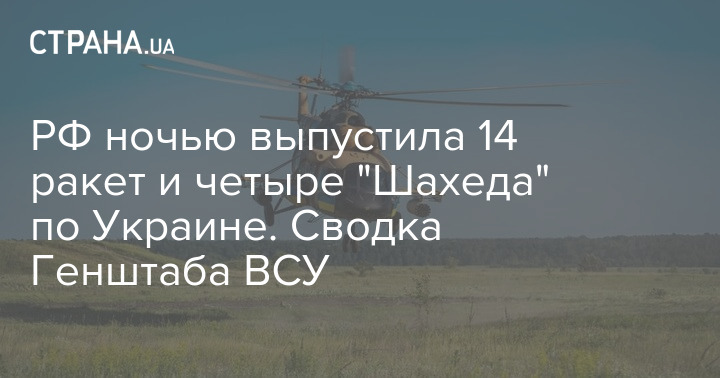 1. Сегодня ночью РФ нанесла очередные удары по Украине. Предварительно, враг применил 14 крылатых ракет Х-101/555, из которых 10 были уничтожены противовоздушной обороной. Также нанес авиационный удар 4 "шахедами", 1 – уничтожен.