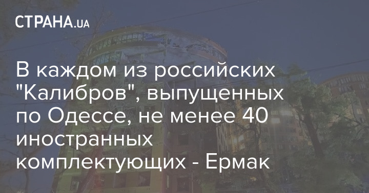 Глава Офиса президента Андрей Ермак, комментируя ночную атаку РФ на Одессу, заявил, что в каждом из российских "Калибров", есть не менее 40 иностранных комплектующих.