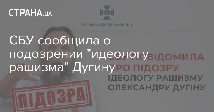 В СБУ сообщили о подозрении "идеологу рашизма" Александру Дугину.