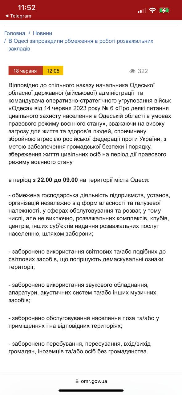 В Одессе ограничили работу развлекательных клубов. С 22:00 до 9:00 запрещена работа заведений в сфере обслуживания (развлекательных комплексов, клубов, центров, других субъектов предоставления развлекательных услуг населению).
