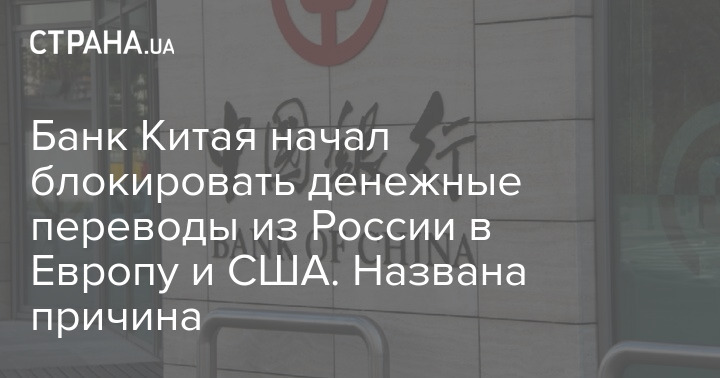 Китайский Bank of China блокирует проведение денежных переводов в юанях, долларах и евро из России в банки Евросоюза, США, Великобритании и Швейцарии под давлением США и ЕС.