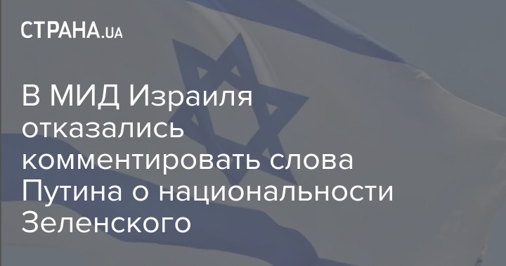 Министерство иностранных дел Израиля отказалось комментировать слова главы Кремля Владимира Путина, который назвал президента Украины Владимира Зеленского "позором еврейского народа".