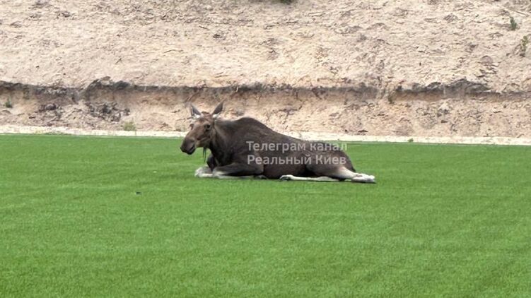 Травмированный лось на стадионном поле. Фото: Телеграм
