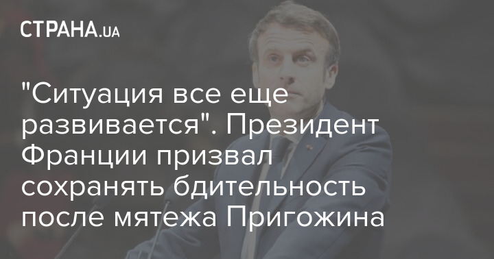 Президент Франции Эмманюэль Макрон призвал сохранять бдительность после попытки мятежа со стороны Евгения Пригожина и ЧВК "Вагнер". По его мнению, ситуация все еще развивается.