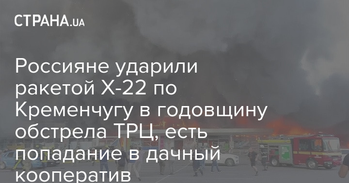 Россияне ударили ракетой Х-22 по Кременчугу в годовщину обстрела ТРЦ, есть попадание в дачный кооператив