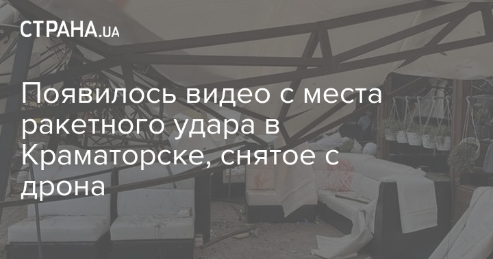 Место ракетного удара в Краматорске, снятое с дрона. На кадрах - кафе "RiaPizza".