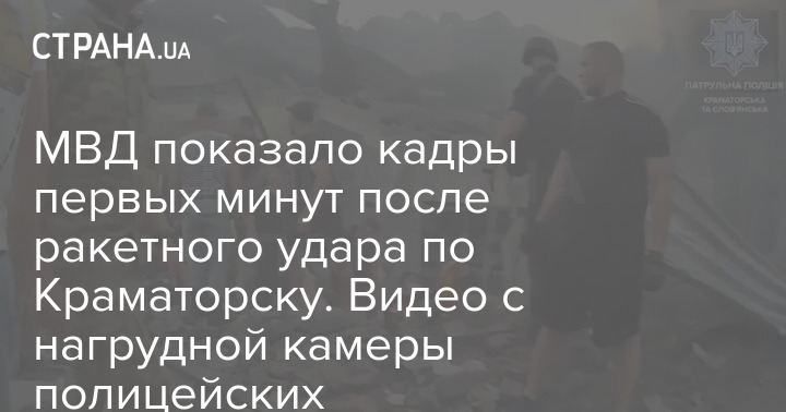 МВД опубликовало кадры первых минут после ракетного удара по Краматорску, снятые на нагрудные камеры патрульных полицейских.