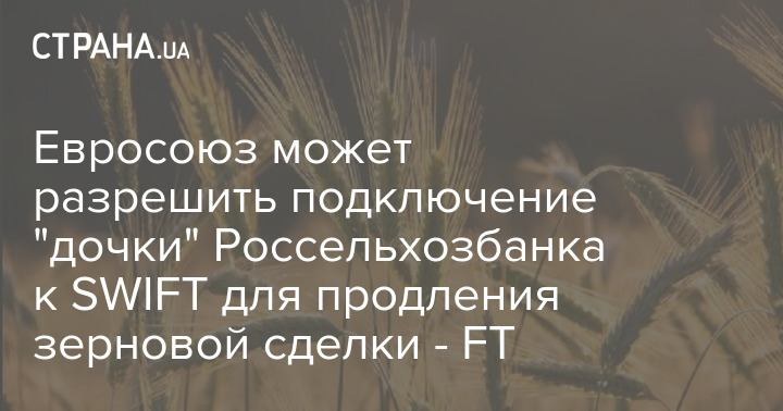 Евросоюз может разрешить "Россельхозбанку", отключенному от SWIFT, создать дочерний банк с доступом к международной системе расчетов для продления "зерновой сделки".