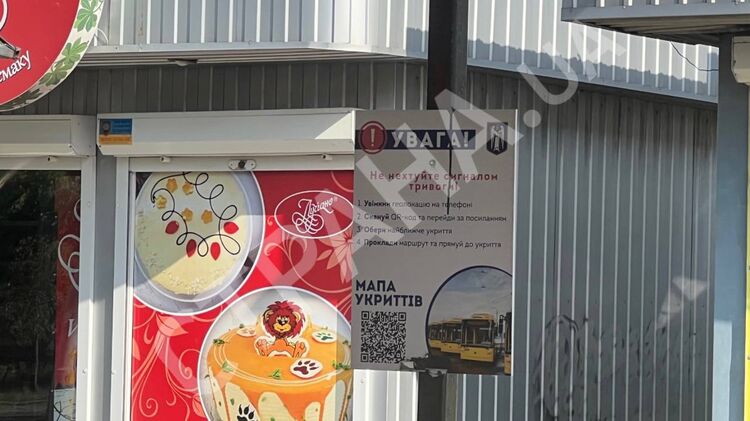 На остановках в Киеве повесили таблички с призывом не игнорировать воздушную тревогу. Фото: "Страна"