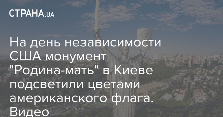 Монумент Родина-Мать в Киеве подсветили в цвета американского флага.