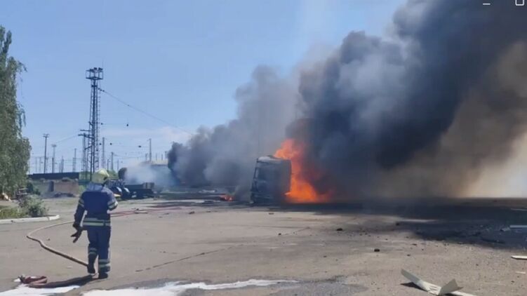 Сообщается, что удар пришелся в район железнодорожной станции, там горят вагоны и фуры.
