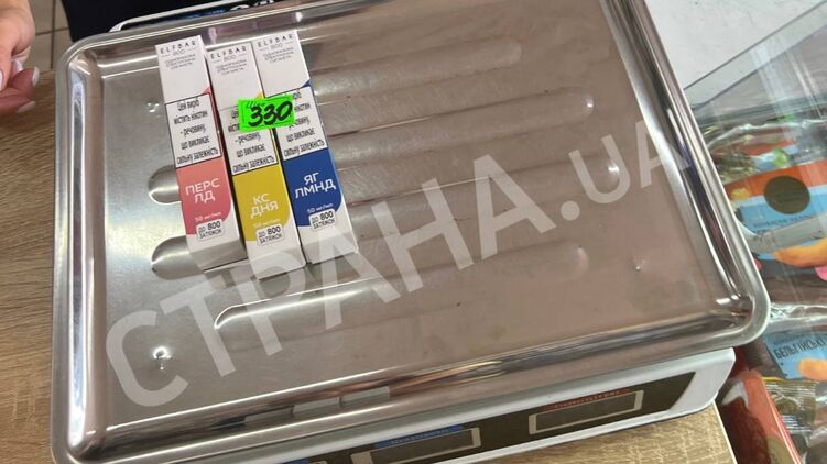 "Есть на разное количество затяжек с разными вкусами. Например сейчас в наличии кислое яблоко, лесная ягода, лимон-мята, клубника-лайм, клюква-виноград, черника. Стоимость "одноразки" на 1200 затяжек — 250 грн, на 3000-4000 затяжек — от 300 грн", — говорит продавец в переходе одной из станций метро в Киеве.