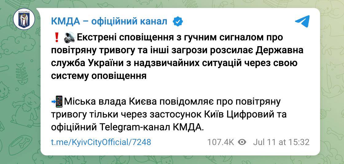 Киевлян снова испугало громкое оповещение о тревоге. В КГГА заявили, что его отправляет ГСЧС, а там отрицают