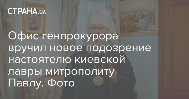Офис генпрокурора объявил о новом подозрении настоятелю Киево-Печерской лавры митрополиту Павлу.