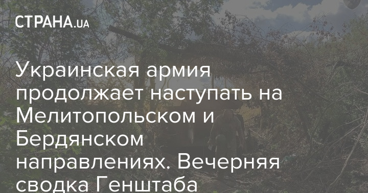 1. ВСУ продолжают наступательные операции на Мелитопольском и Бердянском направлениях, закрепляются на достигнутых рубежах.