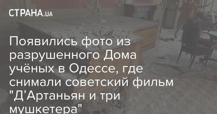 Появились фото из разрушенного Дома учёных в Одессе, где снимали советский фильм "Д’Артаньян и три мушкетера"