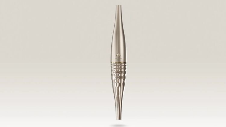 Стальной факел цвета шампань весит 1,5 кг. Визуально он разделен на две половины: матовую верхнюю и блестящую нижнюю с волнистой текстурой. На верхней половине расположен символ Олимпийских и Паралимпийских игр в Париже. Нижняя часть факела символизирует воду, так как Франция планирует пронести олимпийское пламя через все заморские территории. Помимо этого, церемония открытия будет проводить в водах реки Сены.