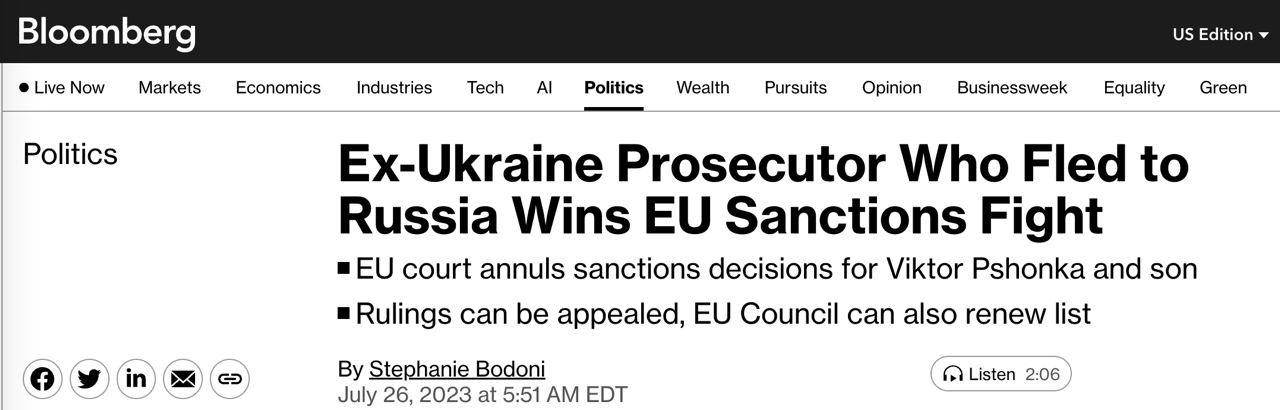 Евросоюз снимет санкции с экс-генпрокурора Пшонки, он выиграл дело в Европейском суде - Bloomberg