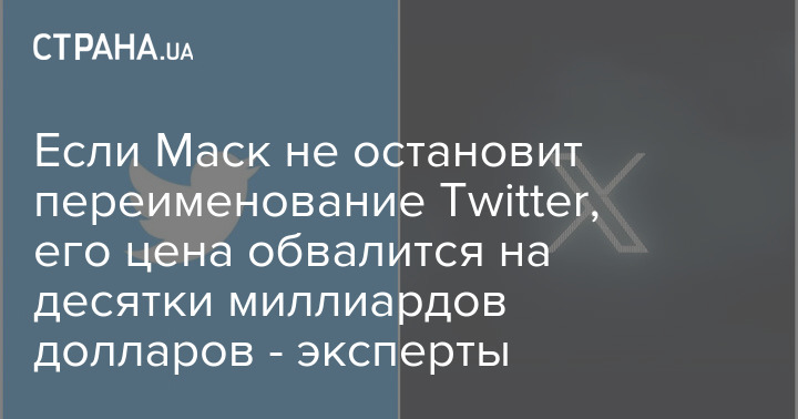 Стоимость Twitter упадет на сумму от 4 до 20 миллиардов долларов, если владелец соцсети Илон Маск не остановит процесс ребрендинга в X.