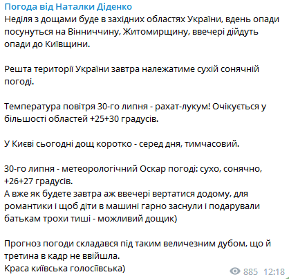 Об этом сообщает синоптик Наталья Диденко в телеграм-канале.
