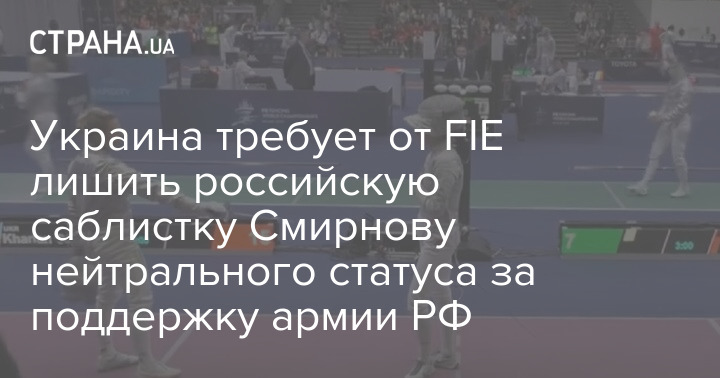 Национальная федерация фехтования Украины обратилась в FIE (Международную федерацию фехтования) с требованием исключить российскую саблистку Анну Смирнову из списка нейтральных спортсменов и немедленно отстранить ее от участия в соревнованиях.