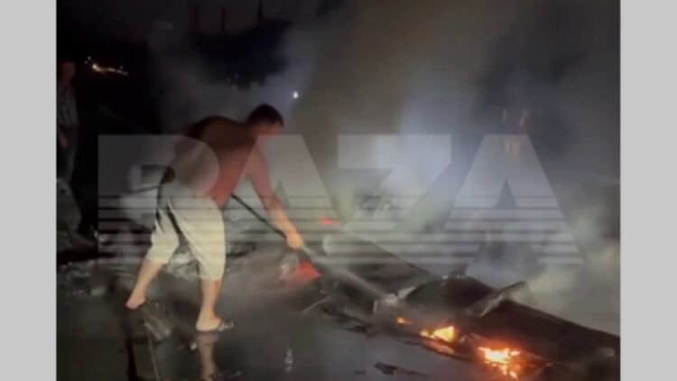 После падения дрона возник пожар. Скриншот видео