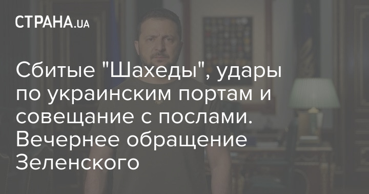 Сбитые "Шахеды", удары по украинским портам и совещание с послами. Вечернее обращение Зеленского