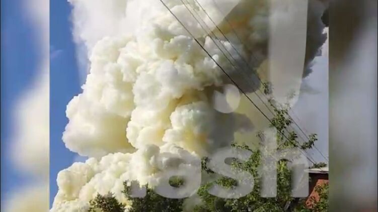 Огромные клубы дама от пожара на заводе в Воскресенке. Фото: Mash
