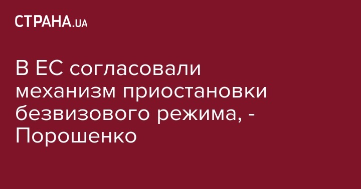 В ЕС согласовали механизм приостановки безвизового режима, - Порошенко