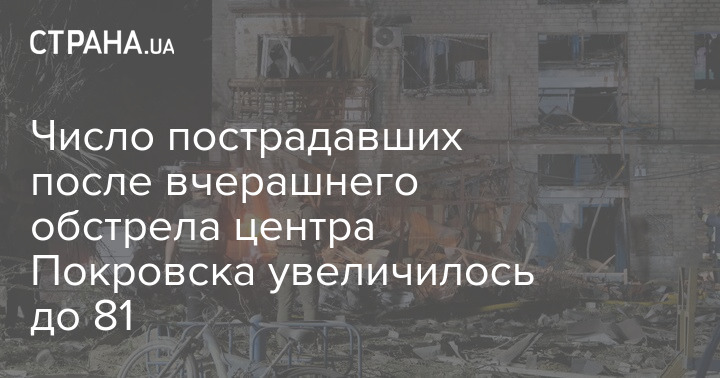 В Покровске уже 81 раненый после обстрела центра города "Искандерами". Среди них: 39 гражданских, в том числе двое детей 2006 и 2012 года рождения, 31 полицейский, 7 работников ГСЧС и 4 военных.