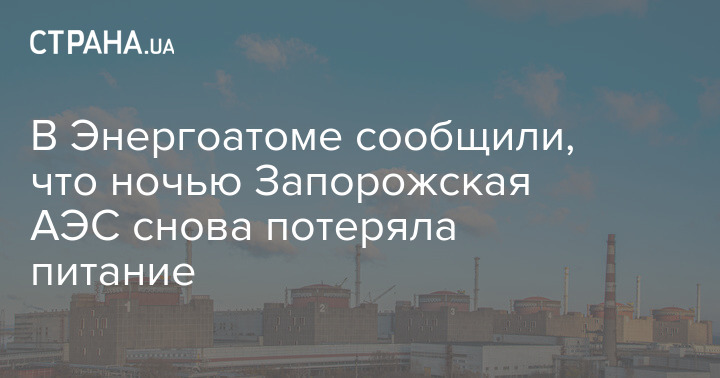 В Энергоатоме сообщили, что ночью Запорожская АЭС снова потеряла питание
