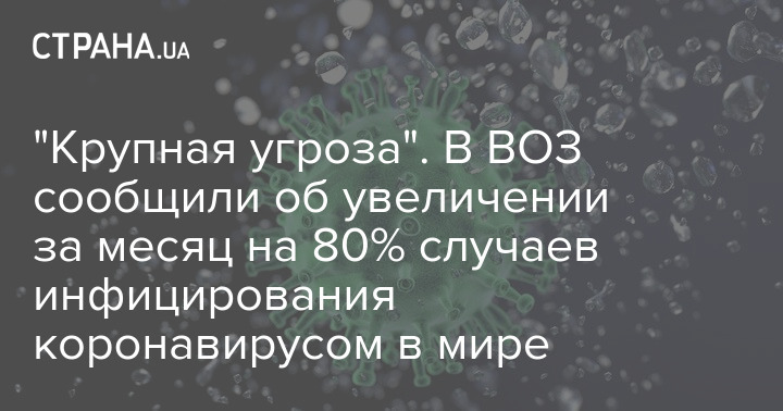 "Крупная угроза". В ВОЗ сообщили об увеличении за месяц на 80% случаев инфицирования коронавирусом в мире