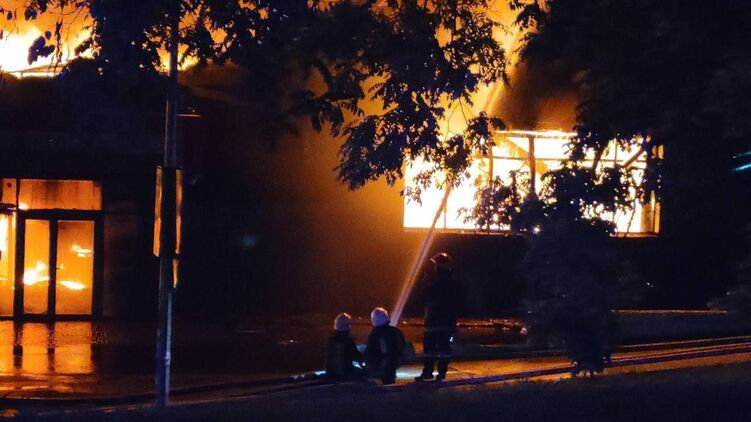 Офис президента публикует видео пожара в одесском супермаркете "Фоззи" после ночного обстрела.